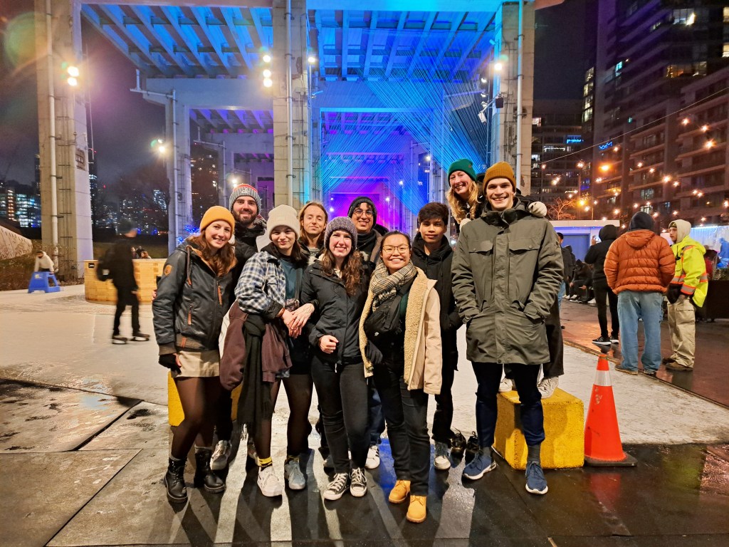 When we came downstairs on Christmas day, we found that the hostel staff had put a Christmas present for every person staying under the tree. They had also put on a special Christmas breakfast of freshly made waffles for everyone. Our little group spent most of Christmas Day just relaxing and watching Christmas films – very different to my usual Christmas. In the evening, 10 of us went ice skating at The Bentway. We were a complete mixed bag of abilities, from people who had never skated before, to ice hockey players and one girl who wanted to work on figure skating moves, and everything in between!